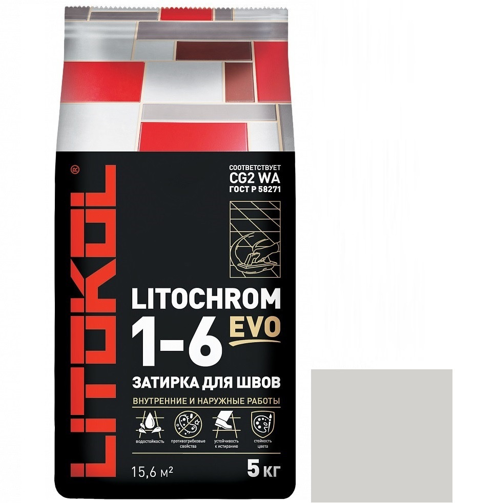 Купить Затирка цементная для швов Litokol Litochrom 1-6 Evo LE.100 Пепельно - белая 5 кг по лучшей цене с доставкой - интернет магазин №1 в России