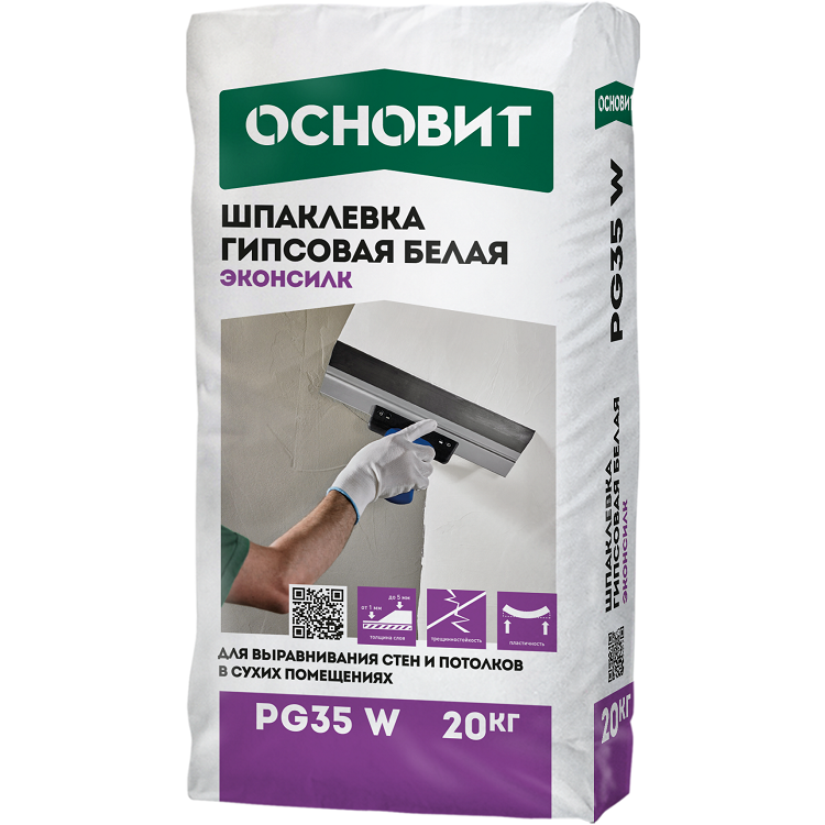 Купить Шпаклевка финишная гипсовая Основит Эконсилк PG35 W 20 кг по лучшей цене с доставкой - интернет магазин №1 в России