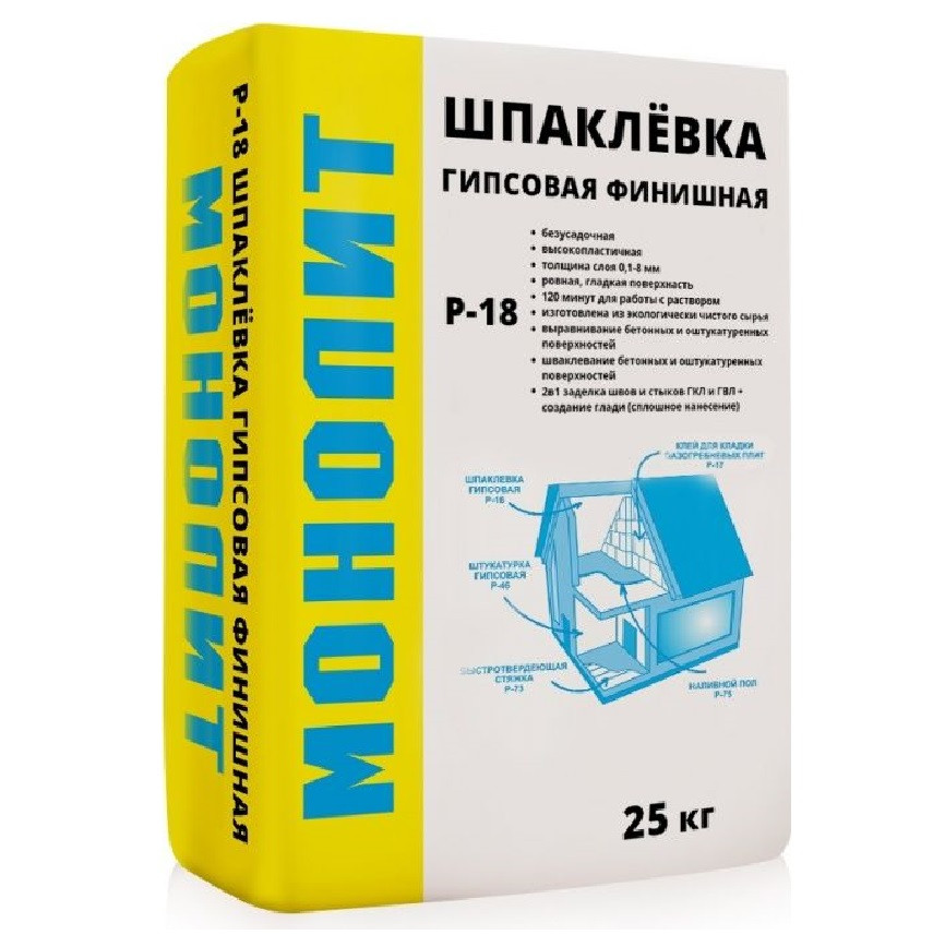 Купить Шпатлевка гипсовая финишная Монолит Р-18 25 кг по лучшей цене с доставкой - интернет магазин №1 в России