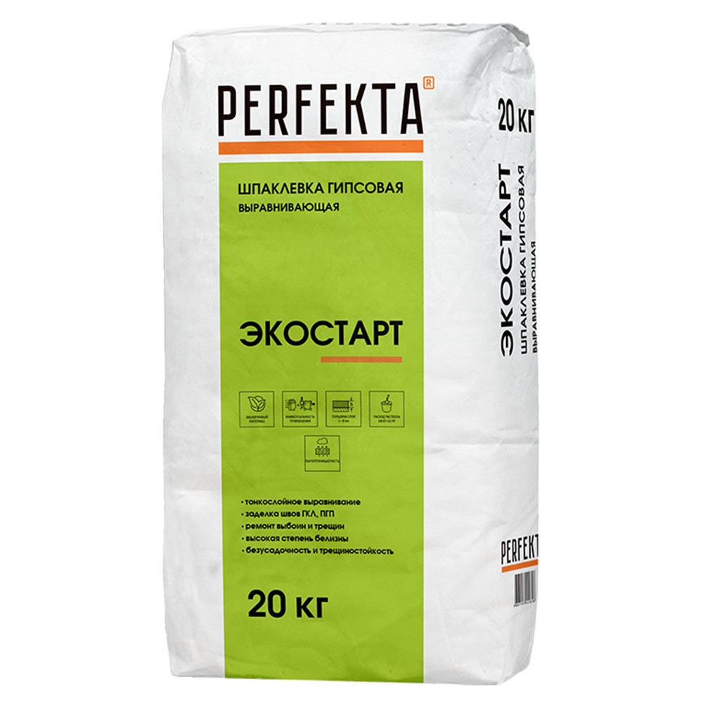 Купить Шпатлевка гипсовая Perfekta Экостарт 20 кг по лучшей цене с доставкой - интернет магазин №1 в России