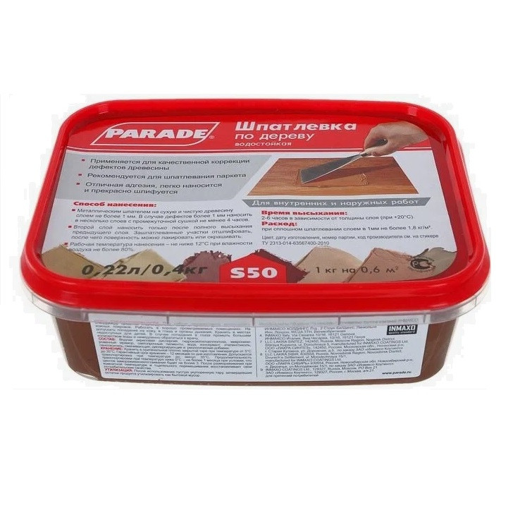 Купить Шпатлевка по дереву Parade S50 махагон 0,4 кг по лучшей цене с доставкой - интернет магазин №1 в России