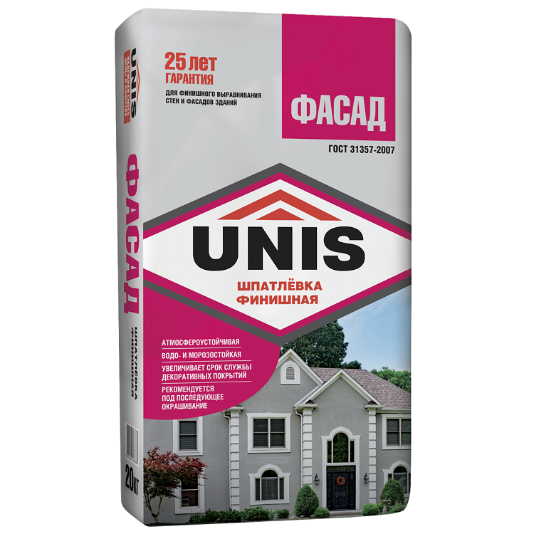 Купить Шпатлевка цементная Unis Фасад 20 кг серая по лучшей цене с доставкой - интернет магазин №1 в России