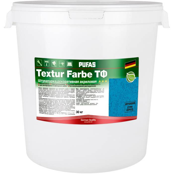 Штукатурка декоративная акриловая Pufas Textur Farbe ТФ короед шуба морозостойкая 2 мм 30 кг