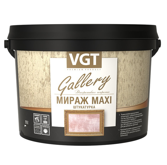 Купить Штукатурка декоративная VGT Мираж Maxi серебристо-белая база 4 л/5 кг по лучшей цене с доставкой - интернет магазин №1 в России