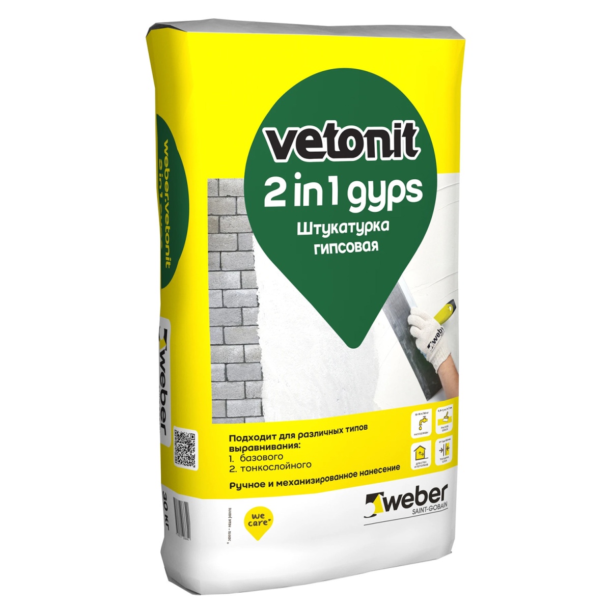 Купить Штукатурка гипсовая Weber.Vetonit 2 in 1 Gyps 30 кг по лучшей цене с доставкой - интернет магазин №1 в России