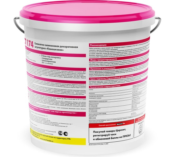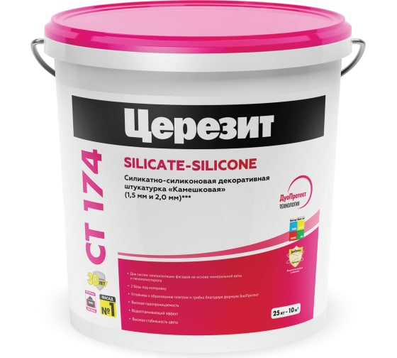 Купить Штукатурка силикатно-силиконовая декоративная Ceresit CT 174 Камешковая 2 мм 25 кг по лучшей цене с доставкой - интернет магазин №1 в России