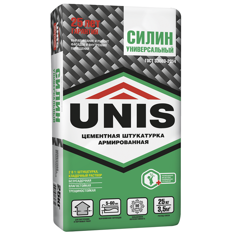 Купить Штукатурка цементная Unis Силин армированная универсальная 25 кг по лучшей цене с доставкой - интернет магазин №1 в России