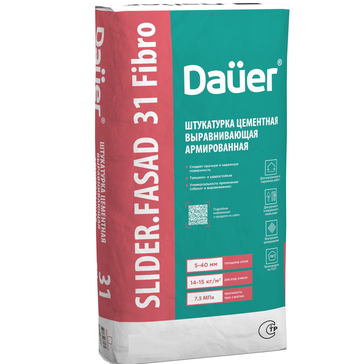Купить Штукатурка цементная выравнивающая Dauer Slider Fasad 31 армированная 25 кг по лучшей цене с доставкой - интернет магазин №1 в России