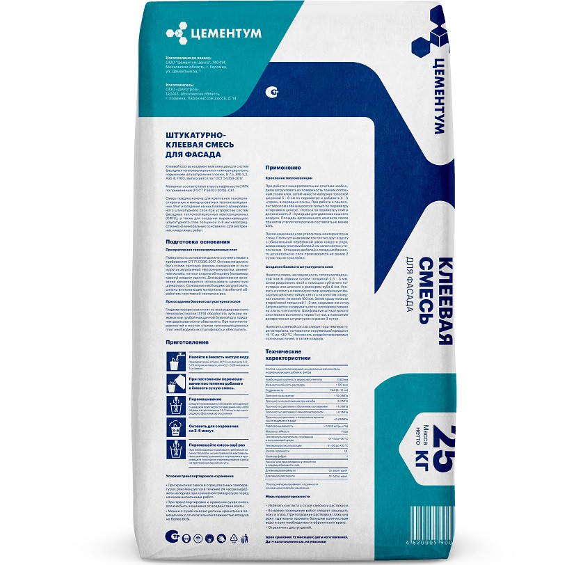 Купить Смесь штукатурно-клеевая Цементум 25 кг по лучшей цене с доставкой - интернет магазин №1 в России