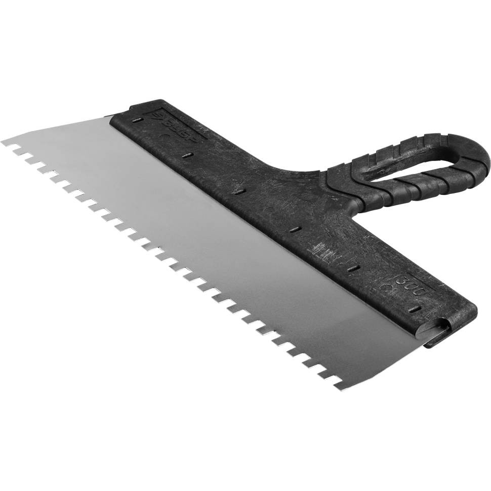 Купить Шпатель фасадный Зубр Мастер 10078-30-06 с пластиковой ручкой и зубьями 6х6 мм 300 мм по лучшей цене с доставкой - интернет магазин №1 в России
