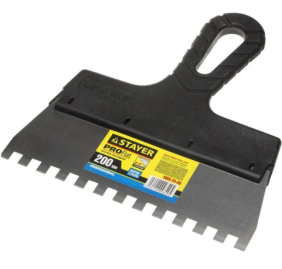 Купить Шпатель зубчатый Stayer Professional 1009-20-08 200 мм зуб 8х8 мм по лучшей цене с доставкой - интернет магазин №1 в России