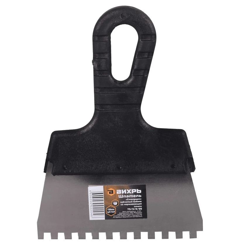 Купить Шпатель зубчатый Вихрь 73/3/2/25 150 мм зуб 6х6 мм по лучшей цене с доставкой - интернет магазин №1 в России