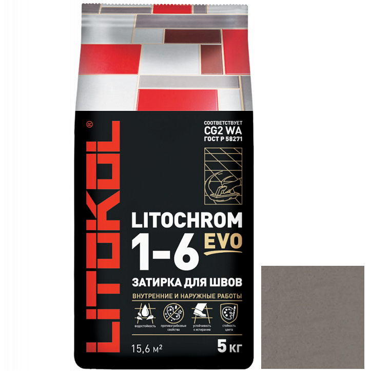 Купить Затирка цементная для швов Litokol Litochrom 1-6 Evo LE.130 серая 5 кг по лучшей цене с доставкой - интернет магазин №1 в России