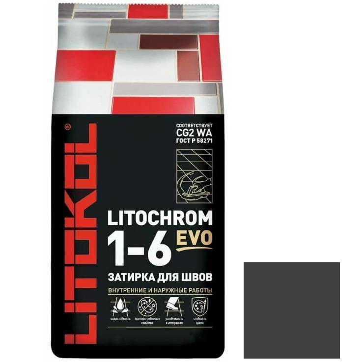 Купить Затирка цементная для швов Litokol Litochrom 1-6 Evo LE.145 черный уголь 25 кг по лучшей цене с доставкой - интернет магазин №1 в России