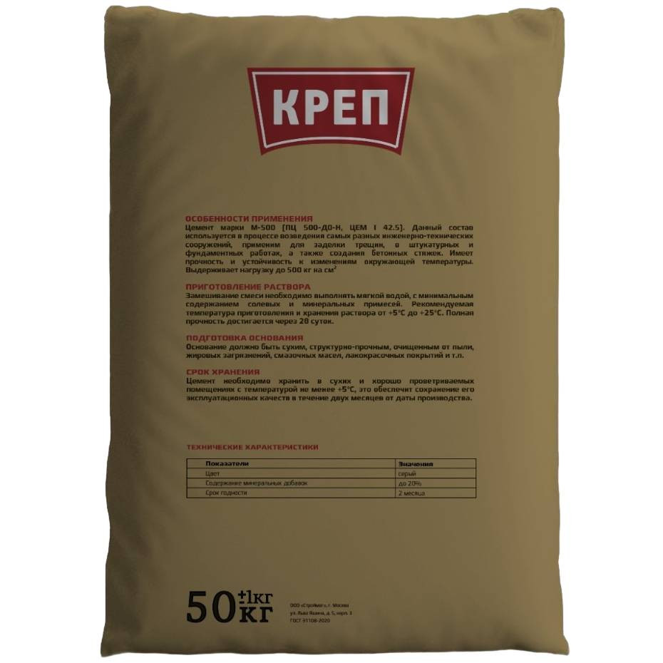 Купить Цемент Креп М500 Д20/ЦЕМ II А-И 42,5Н 50 кг по лучшей цене с доставкой - интернет магазин №1 в России