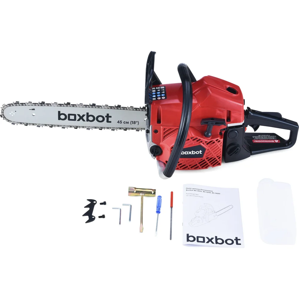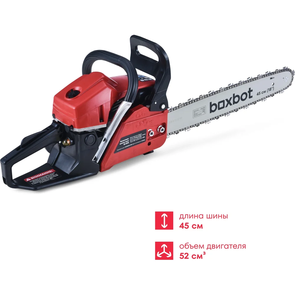 Купить Бензиновая цепная пила Boxbot BS-5218, 52 куб.см, шина 45 см, шаг 0,325, паз 1,5 мм, 72 звена 904337.BS-5218-2 по лучшей цене с доставкой - интернет магазин №1 в России