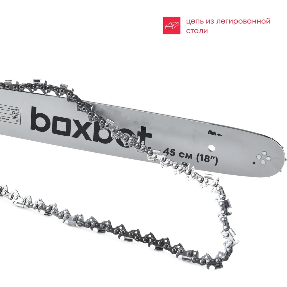 Бензиновая цепная пила Boxbot BS-5218, 52 куб.см, шина 45 см, шаг 0,325, паз 1,5 мм, 72 звена 904337.BS-5218-2