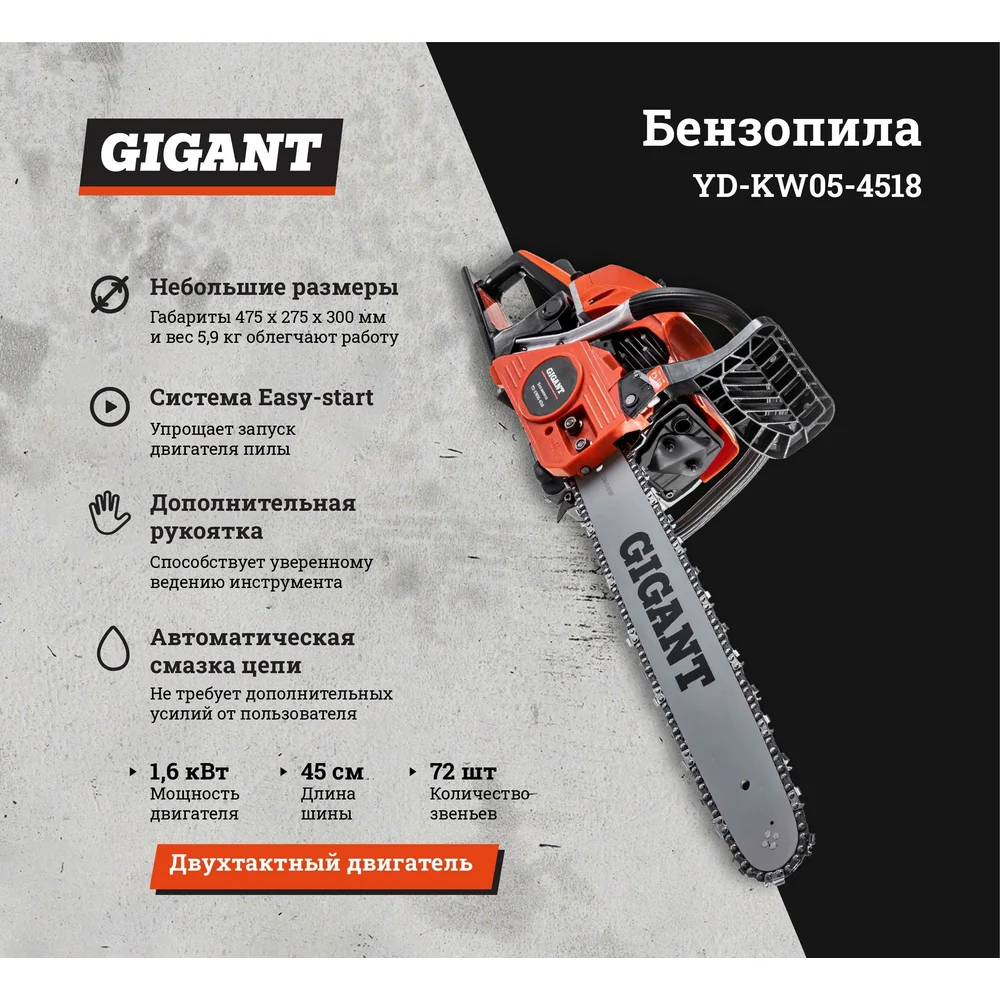 Купить Бензопила 2,2 л.с., 18 дюймов, Gigant YD-KW05-4518 по лучшей цене с доставкой - интернет магазин №1 в России