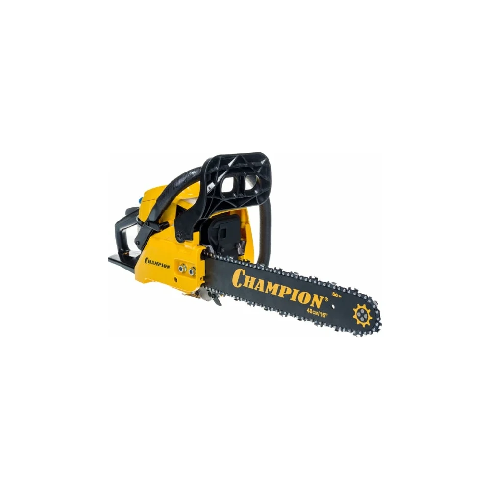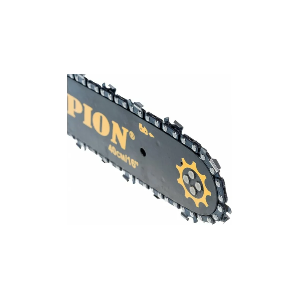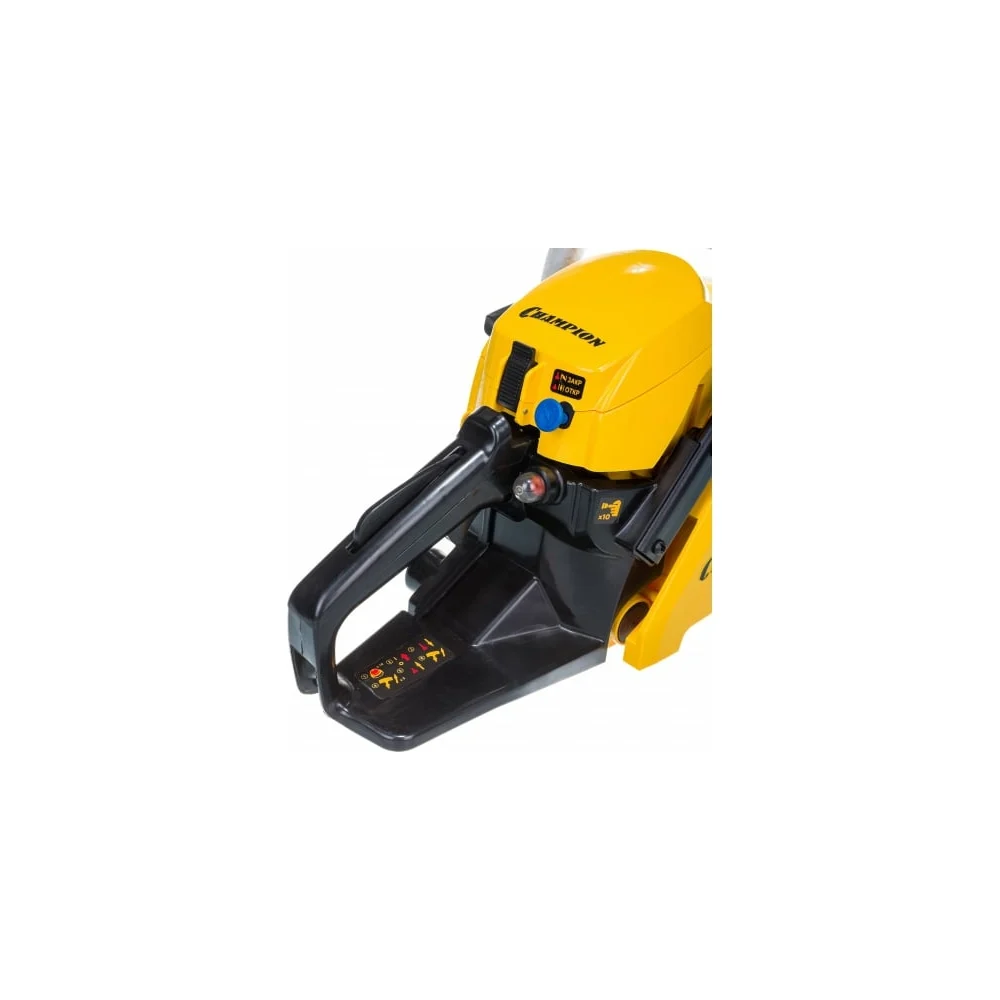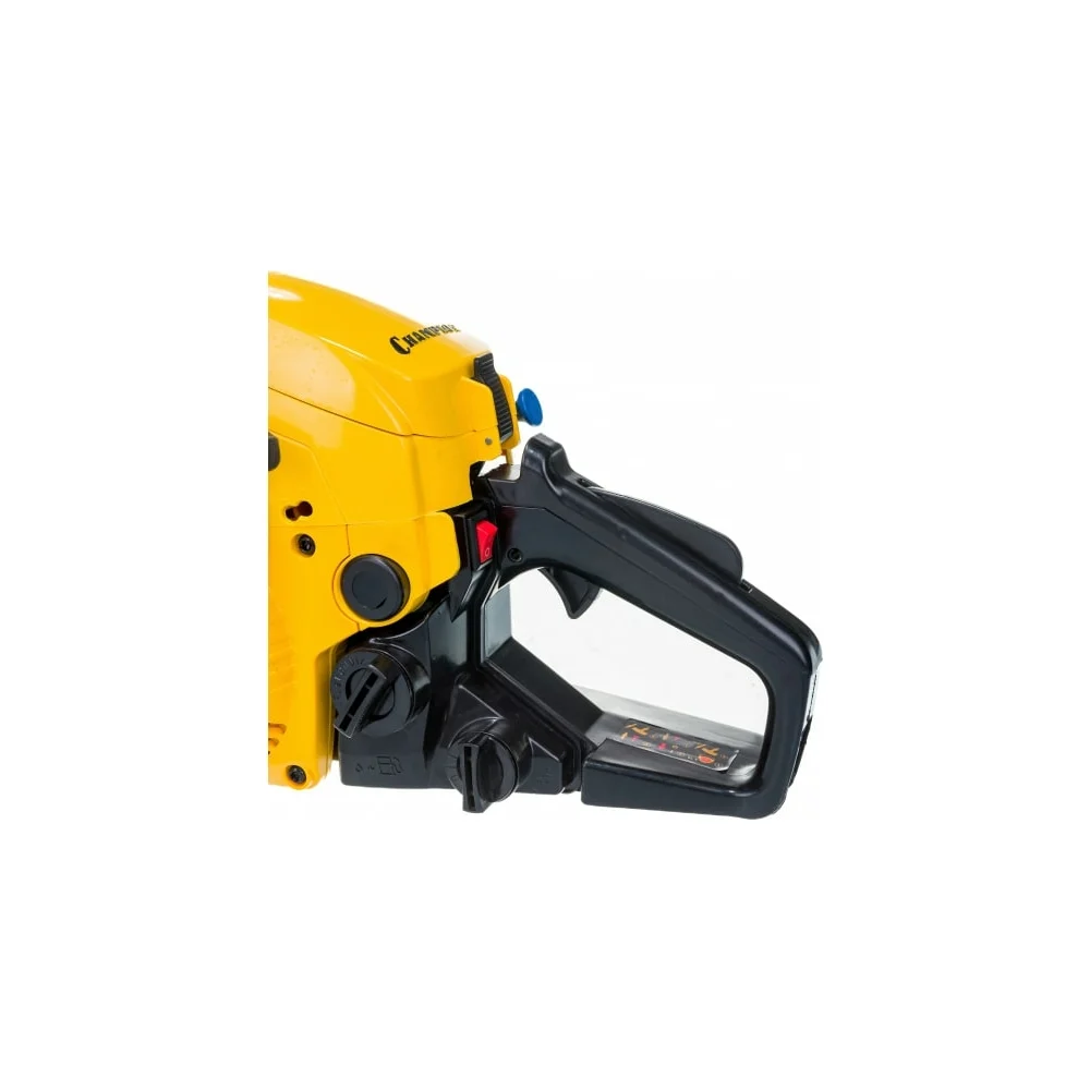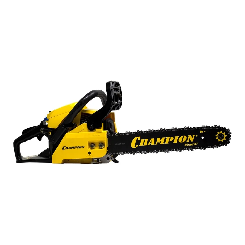 Комплектация Бензопила 1 шт; Руководство по эксплуатации 1 шт; Емкость для приготовления топливной смеси 1 шт; Чехол для шины 1 шт; Шина 1 шт; Цепь пильная 1 шт; Упор зубчатый 1 шт; Винт крепления упора зубчатого 1 шт; Отвертка 1 шт; Ключ свечной 1 шт; Напильник 1 шт; Подарочный набор: цепь CHAMPION 3/8"-1.3мм-56 зв.; масло для смазки пильных цепей и шин CHAMPION 1 л; свеча зажигания IGP L7T масло для 2-тактных двигателей CHAMPION JASO FD 0,1 л – 1 шт; цепь CHAMPION 3/8"-1.3мм-56 зв; масло для смазки пильных цепей и шин CHAMPION 1 л; свеча зажигания IGP L7T; масло для 2-тактных двигателей CHAMPION JASO FD 0,1 л – 1 шт