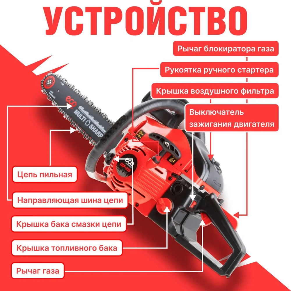 Купить Бензопила ECO 45 см 18, 0.325, 1.5 мм, 72 звеньев CSP-235 по лучшей цене с доставкой - интернет магазин №1 в России