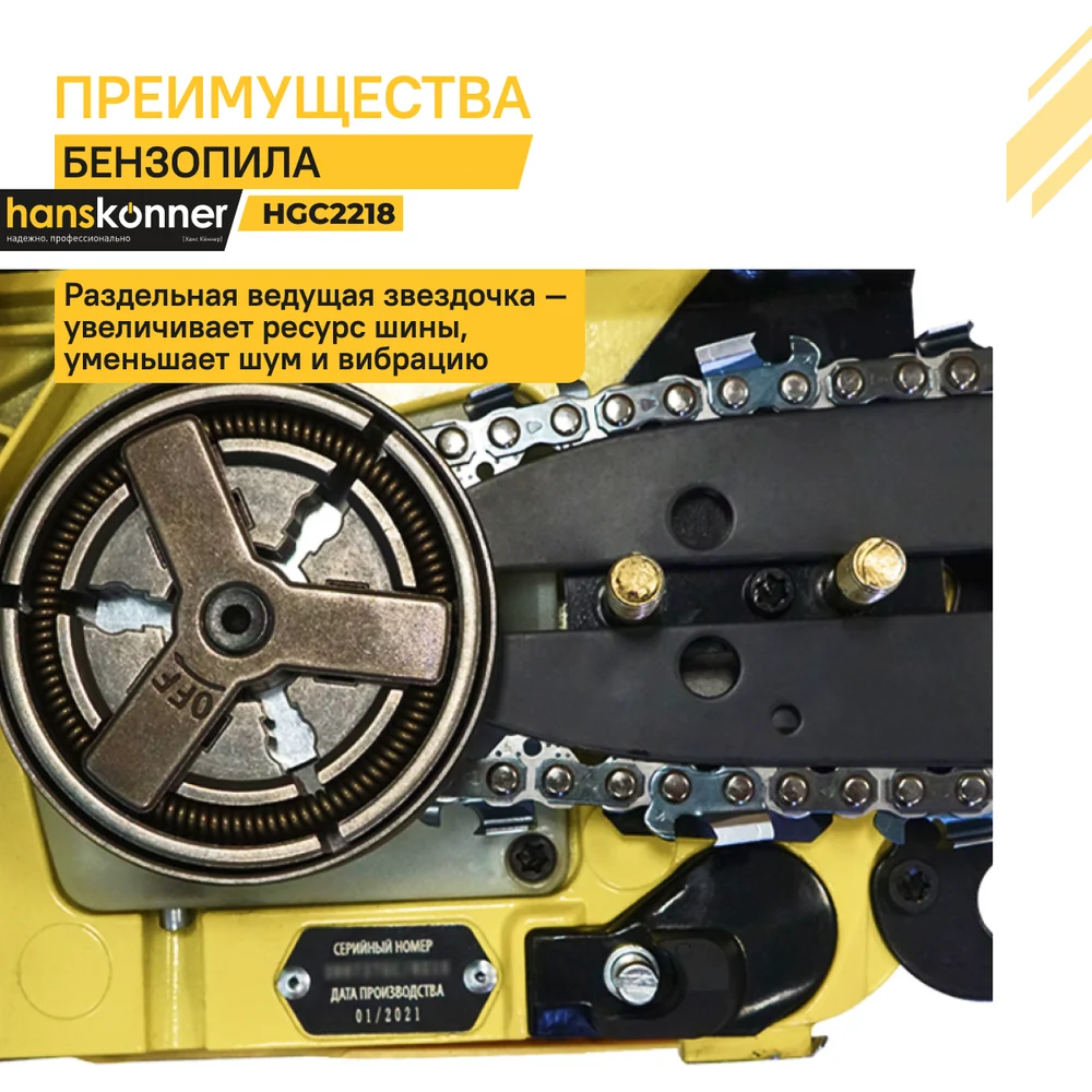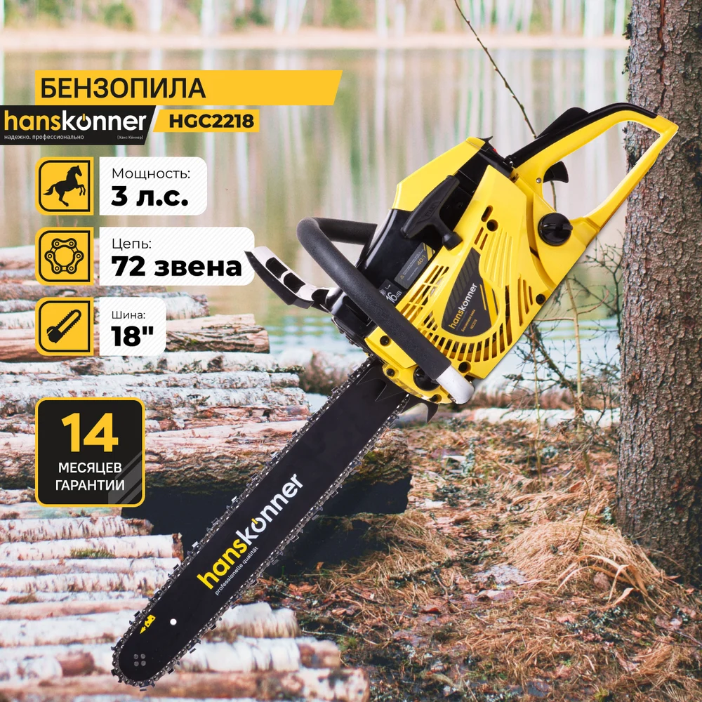 Купить Бензопила Hanskonner 18" HGC2218 по лучшей цене с доставкой - интернет магазин №1 в России