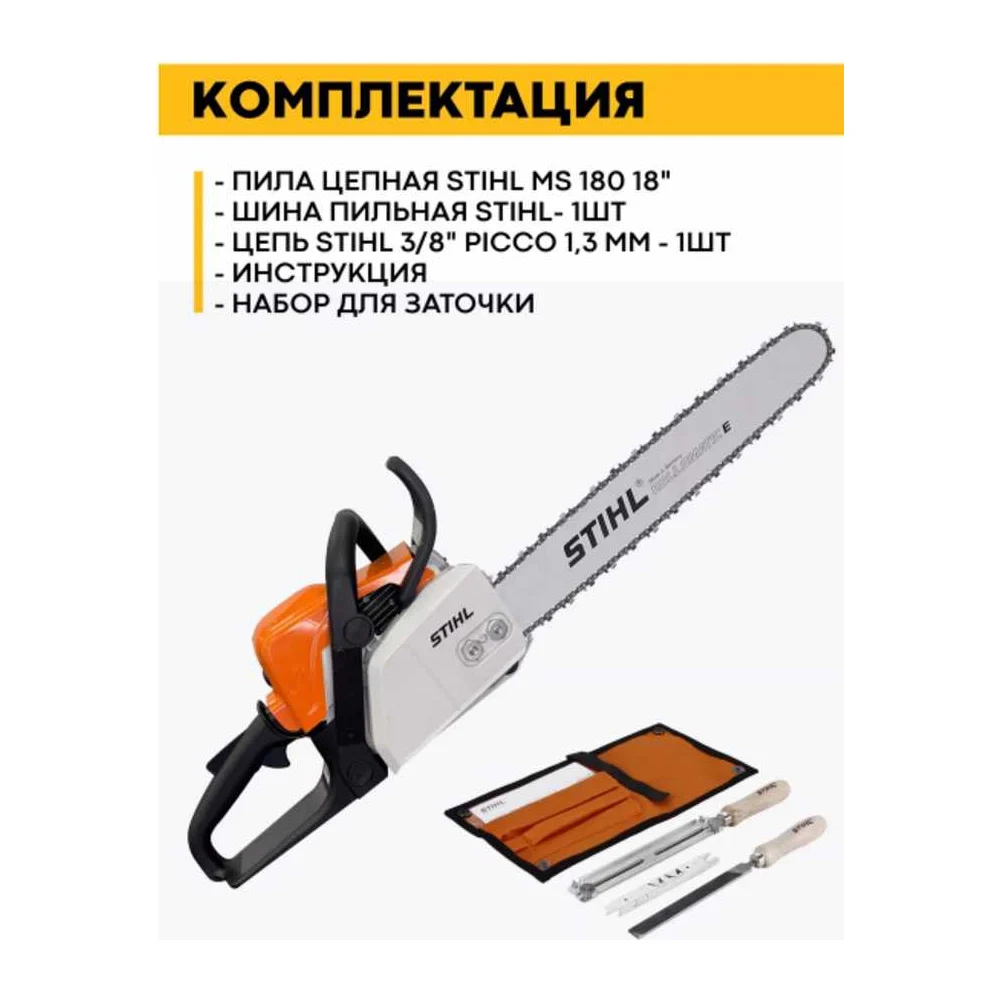Купить Бензопила Stihl MS 180 18, 3/8 Picco 1.3 мм, набор заточной 11302000472м по лучшей цене с доставкой - интернет магазин №1 в России