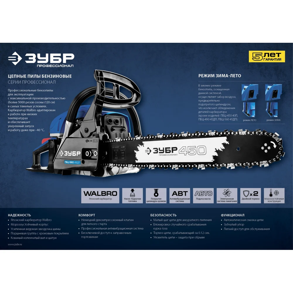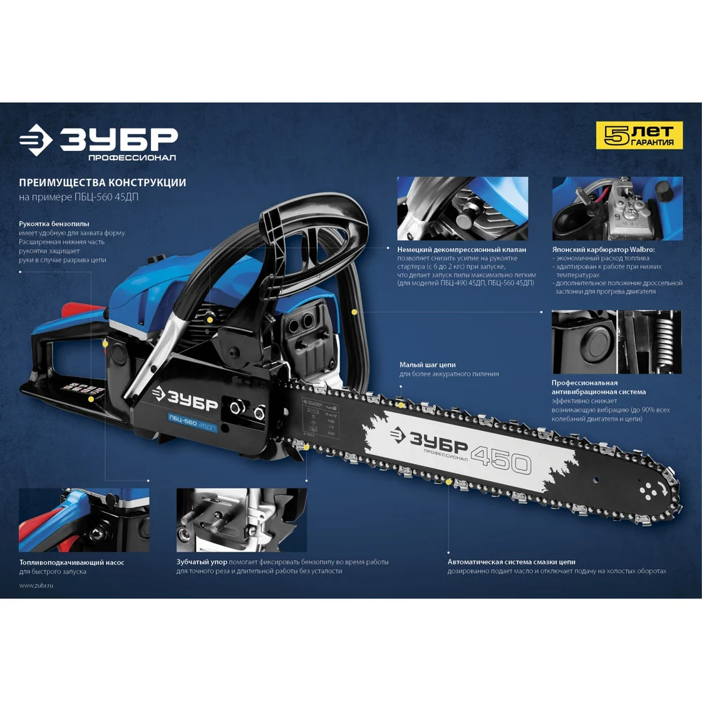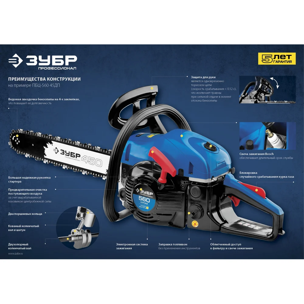 Купить Бензопила Зубр ПБЦ-560 45ДП по лучшей цене с доставкой - интернет магазин №1 в России