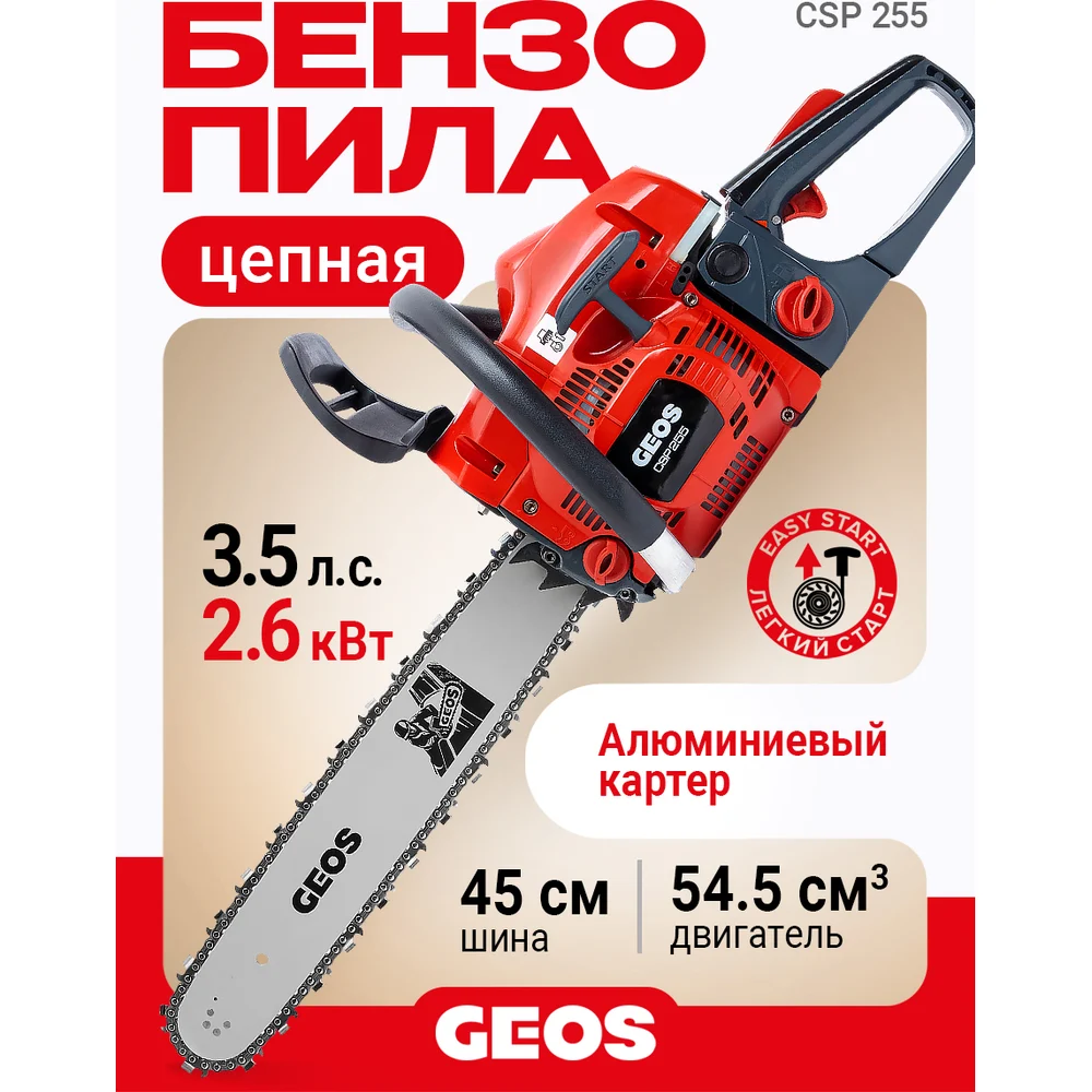 Купить Мотопила цепная бензиновая GEOS CSP255 213339 по лучшей цене с доставкой - интернет магазин №1 в России