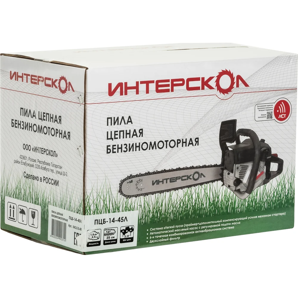 Купить Пила цепная бензиномоторная Интерскол ПЦБ-14/45Л 842.0.0.40 по лучшей цене с доставкой - интернет магазин №1 в России