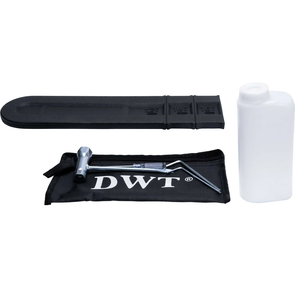Комплектация Бензиновая цепная пила (моторный блок) - 1 шт; Пильная шина DWT 16" (400 мм) - 1 шт; Пильная цепь 3/8" / 1,3 мм / 57 звеньев - 1 шт; Емкость для приготовления топливной смеси - 1 шт; Защитный кожух - 1 шт; Зубчатый упор - 1 шт; Сумка для аксессуаров - 1 шт; Набор ключей - 1 шт; HEPA-фильтр (установлен на пиле) - 1 шт; Инструкция по эксплуатации - 1 шт; Коробка - 1 шт