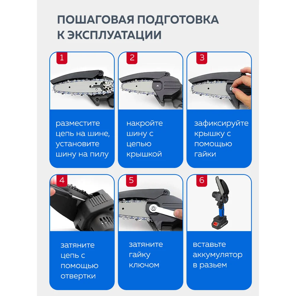 Комплектация Пластиковый кейс; Пила; Цепь; Зарядное устройство; Отвертка