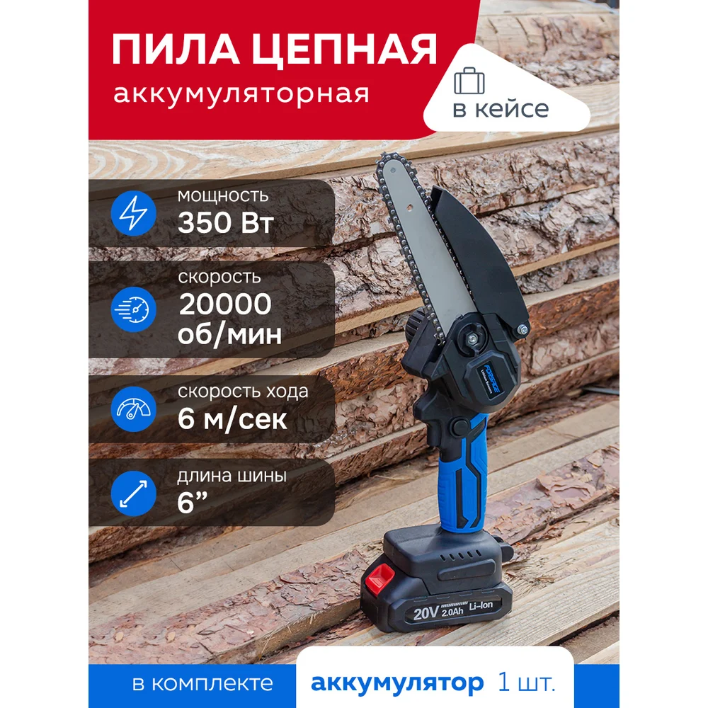 Купить Аккумуляторная цепная пила Forsage 1 аккумулятор li-ion 20 В, 2.0 Ач F-WT03156 56460 по лучшей цене с доставкой - интернет магазин №1 в России