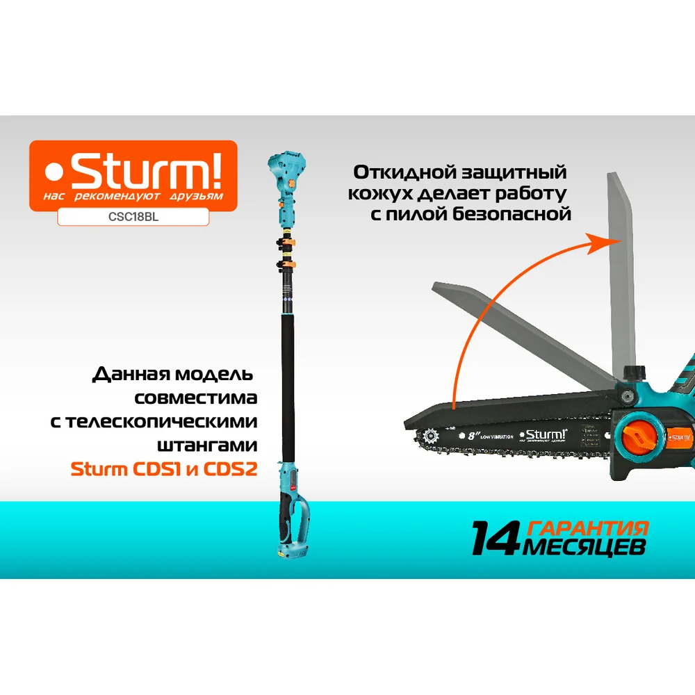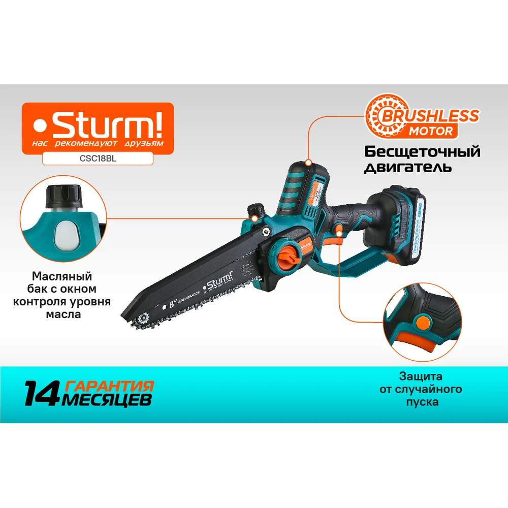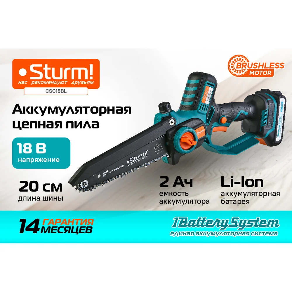 Купить Аккумуляторная цепная пила Sturm! 1BatterySystem CSC18BL по лучшей цене с доставкой - интернет магазин №1 в России