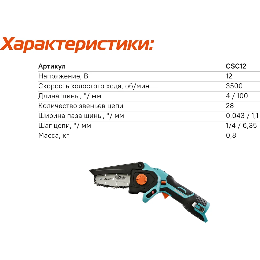 Купить Аккумуляторная цепная пила Sturm! CSC12 по лучшей цене с доставкой - интернет магазин №1 в России
