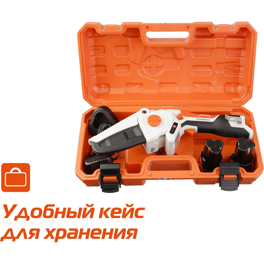 Комплектация Пила цепная; Пильная шина; Пластиковый защитный кожух шины; Пильная цепь; Аккумуляторная батарея 2 шт; Зарядное устройство; Инструкция по эксплуатации; Инструкция по безопасности