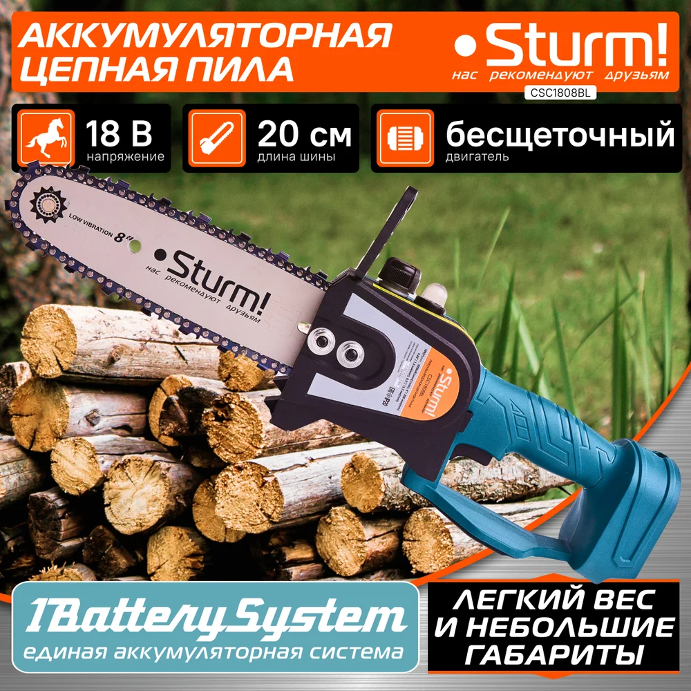 Купить Аккумуляторная цепная пила Sturm CSC1808BL по лучшей цене с доставкой - интернет магазин №1 в России