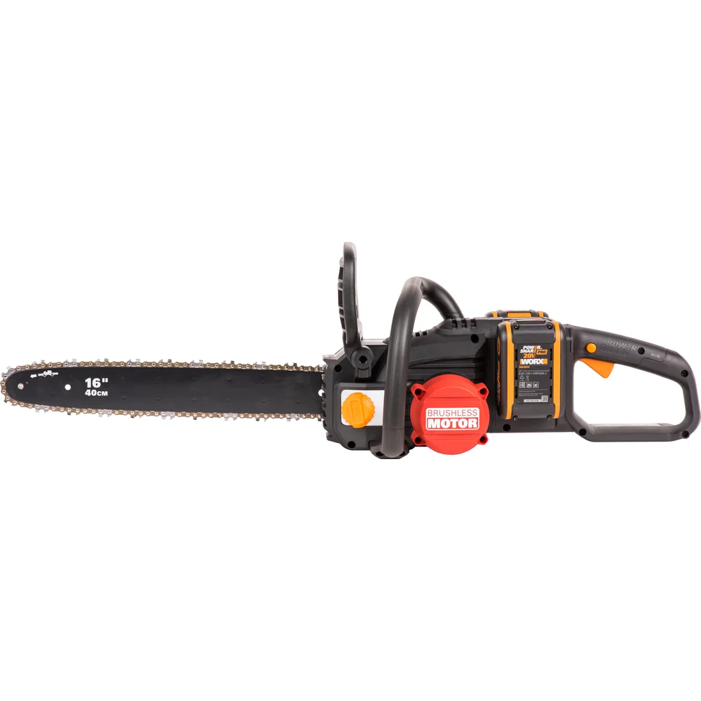 Купить Аккумуляторная цепная пила WORX NITRO , 40В 40см бесщеточная, 4.0Ач х2, ЗУ 2А, коробка WG385E по лучшей цене с доставкой - интернет магазин №1 в России