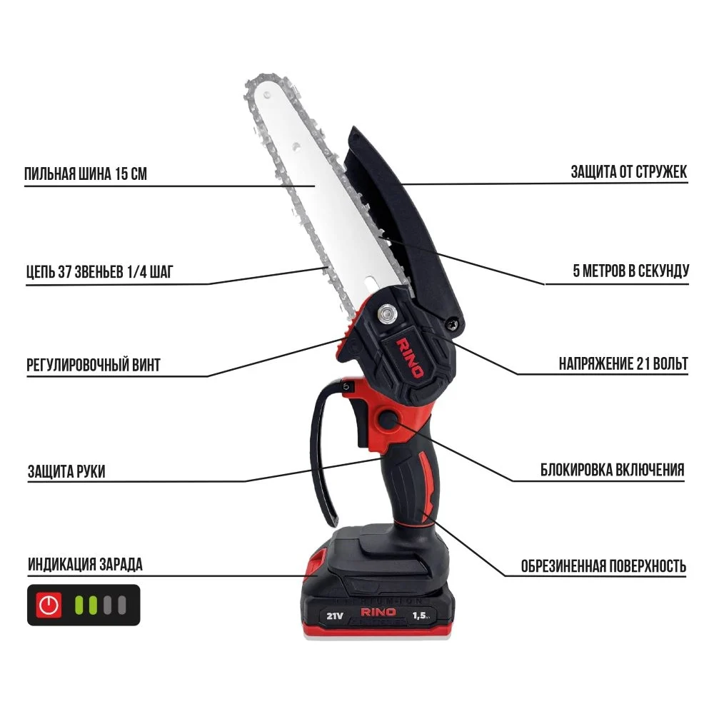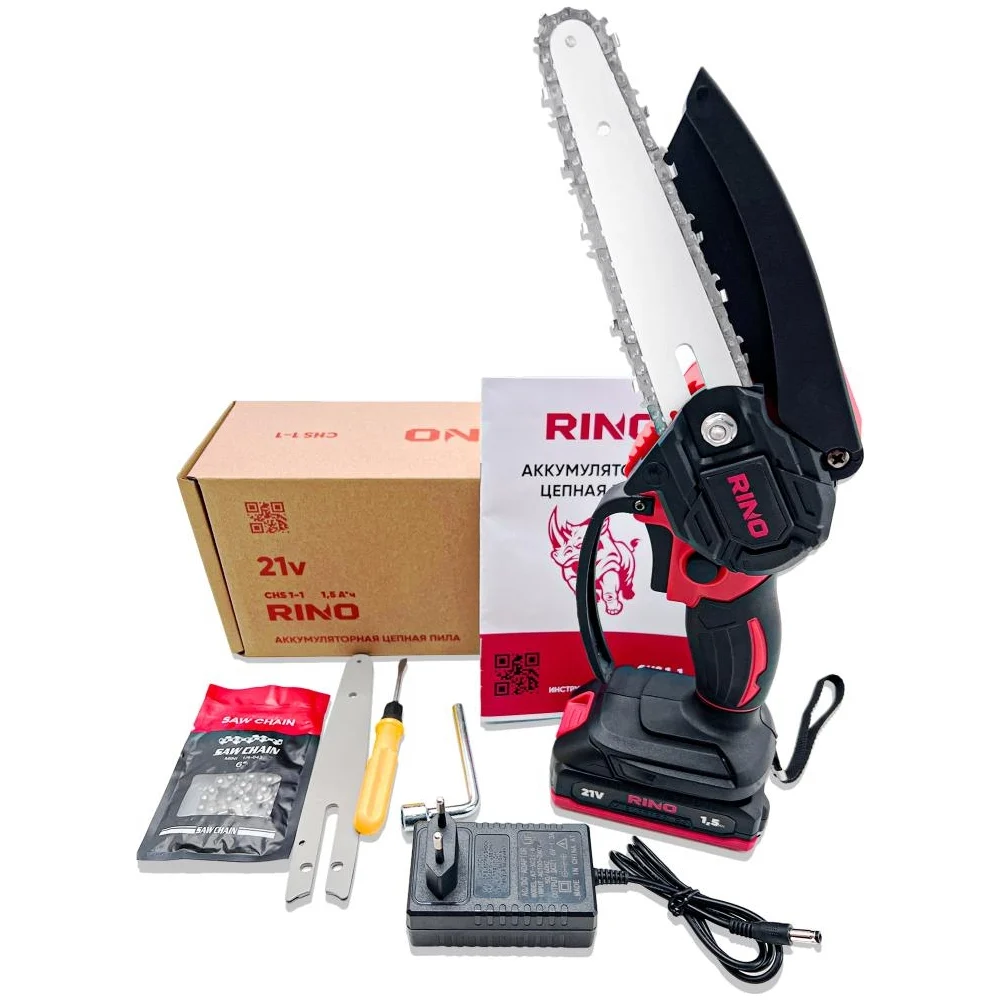 Купить Пила аккумуляторная цепная щеточная RINO 6 дюймов 21В АКБ1.5Ач CHS1-1 по лучшей цене с доставкой - интернет магазин №1 в России