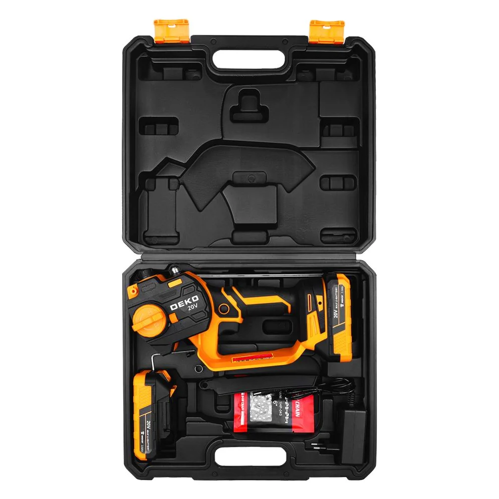 Купить Пила цепная аккумуляторная DEKO DKCHS 20-6, 20В, 2x2.5Ач в кейсе 085-2014 по лучшей цене с доставкой - интернет магазин №1 в России