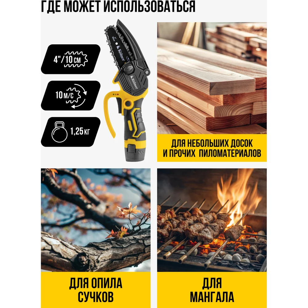 Купить Пила цепная аккумуляторная Kolner 12 В, 10 см (4), KCCS 10/12C, 10 м/с 8060100013 по лучшей цене с доставкой - интернет магазин №1 в России