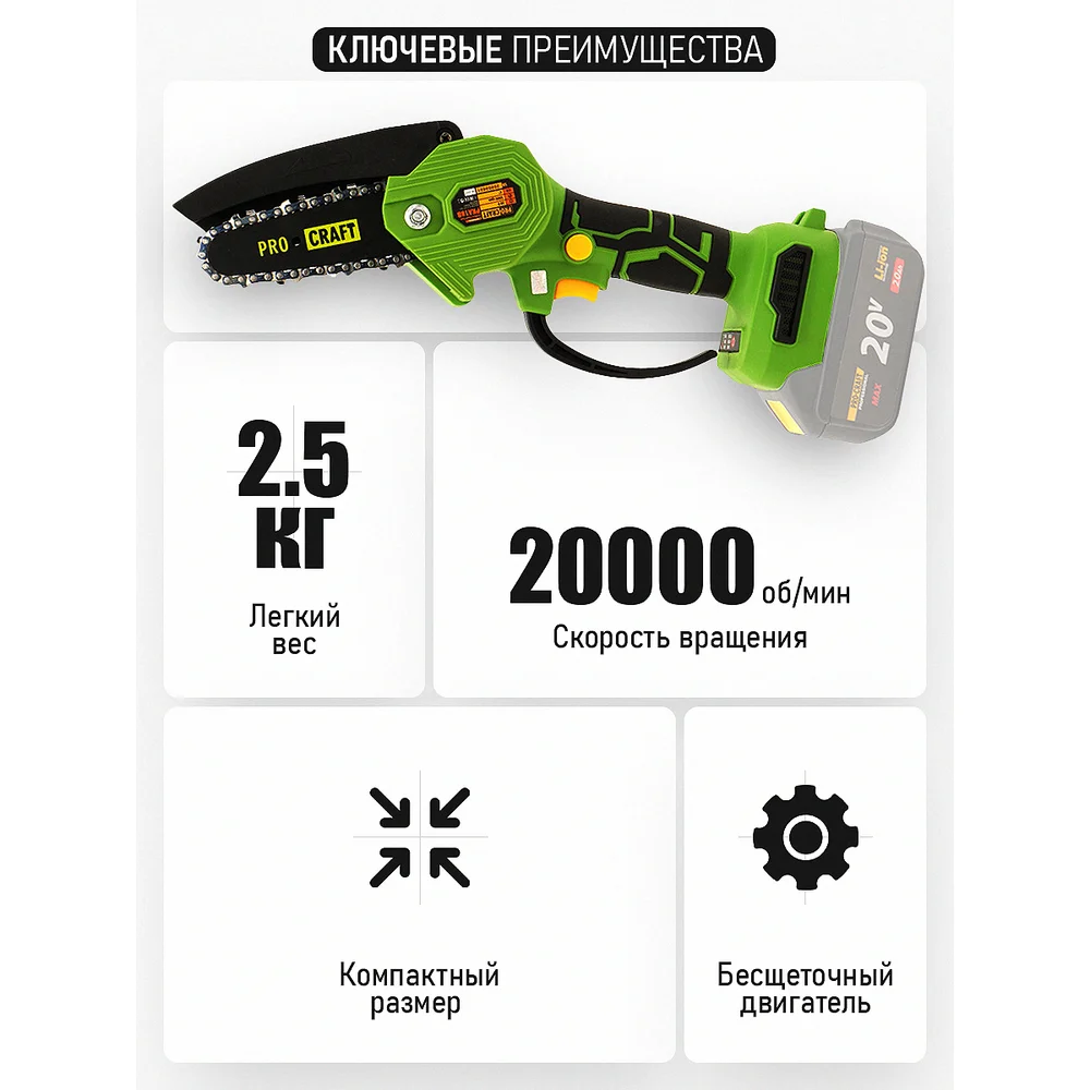 Купить Цепная пила аккумуляторная PROCRAFT Universal (БЕЗ АКБ, комплектация 1 шина, 1 цепь) PKA18 по лучшей цене с доставкой - интернет магазин №1 в России