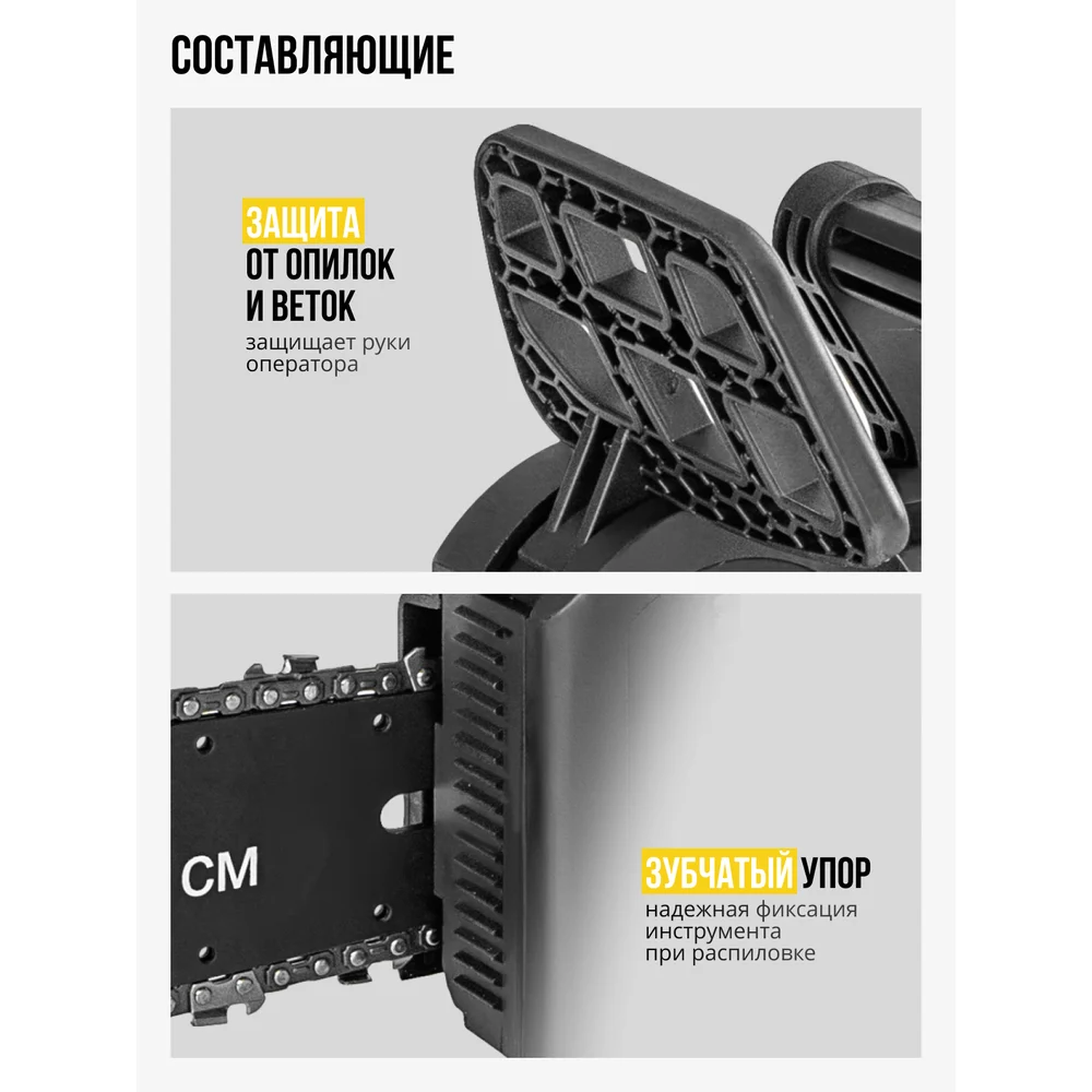 Комплектация Пила цепная электрическая - 1 шт; Шина - 1 шт; Чехол для шины - 1 шт; Цепь пильная - 1 шт; Ключ - 1 шт; Руководство по эксплуатации - 1 шт