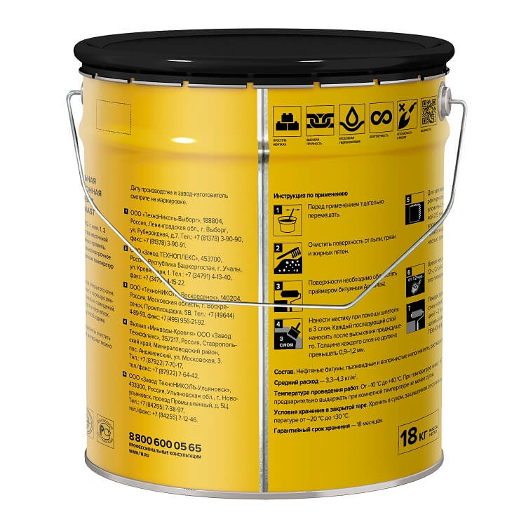 Купить Мастика битумно-резиновая ТЕХНОНИКОЛЬ AquaMast, 18 кг V253 по лучшей цене с доставкой - интернет магазин №1 в России