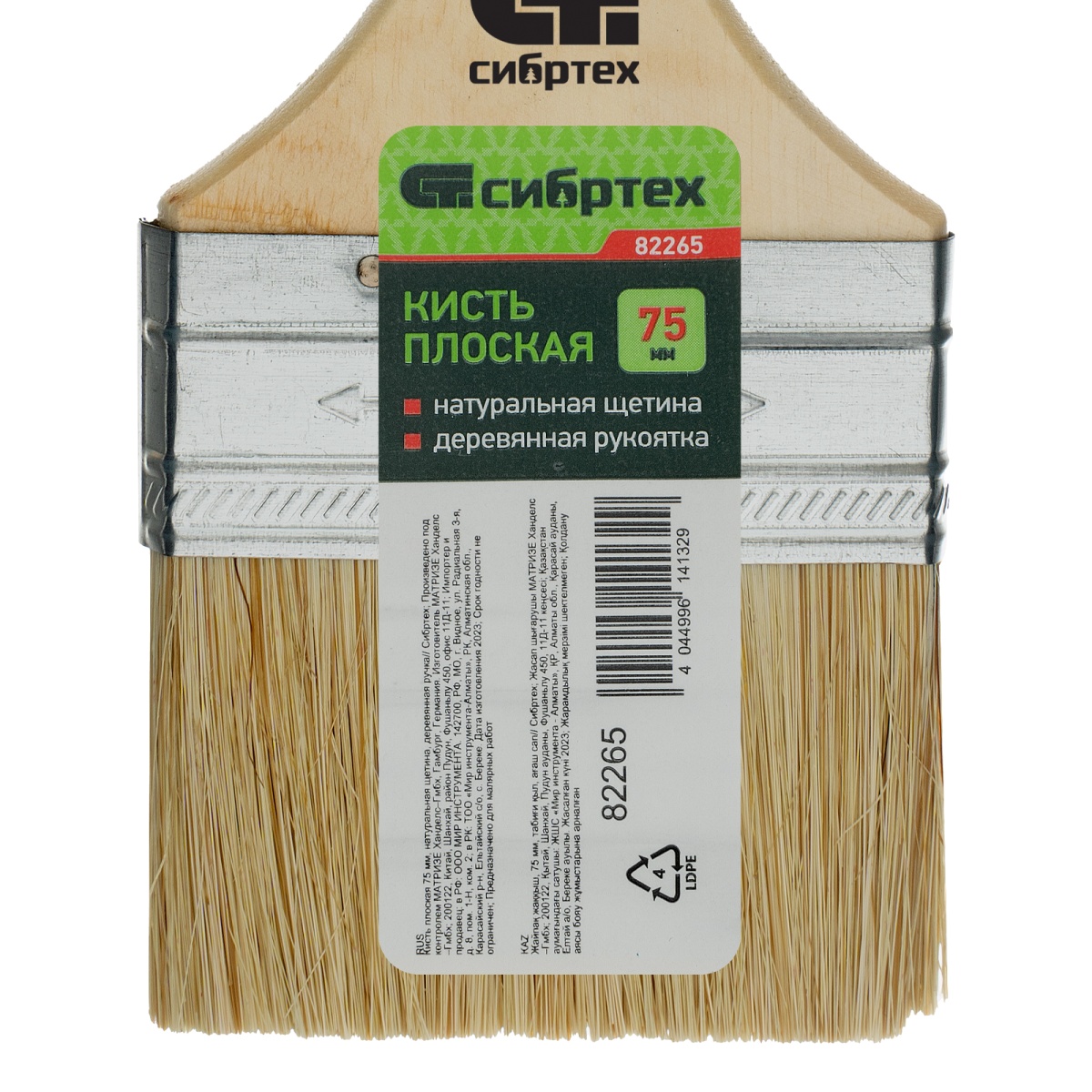 Купить Кисть плоская 75 мм, натуральная щетина, деревянная ручка Сибртех V2110 по лучшей цене с доставкой - интернет магазин №1 в России