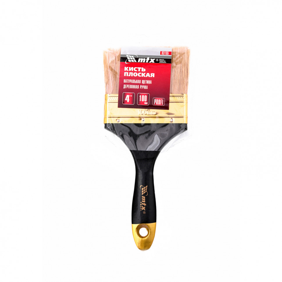 Купить Кисть плоская "Профи" 4", натуральная щетина, деревянная ручка MTX V2090 по лучшей цене с доставкой - интернет магазин №1 в России